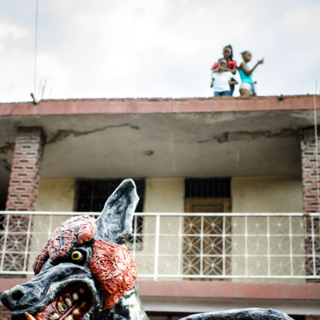 Sur les photos que j’ai sélectionnées, beaucoup de monstres, de personnages étranges inspirés du vaudou et de l’histoire tortueuse d’Haïti.